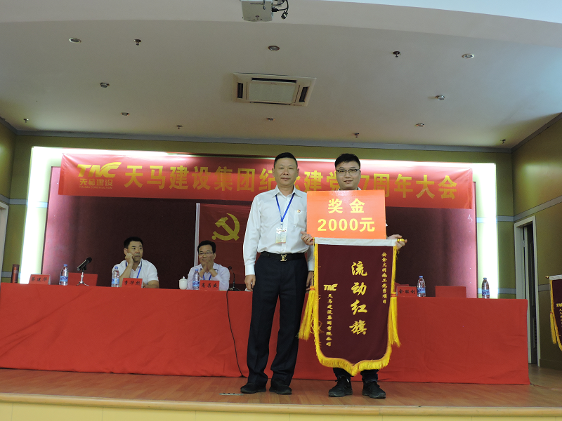 集團(tuán)監(jiān)事會主席張幼明為北洋橋舜安碧水文化體育中心項(xiàng)目部頒發(fā)紅旗、獎金