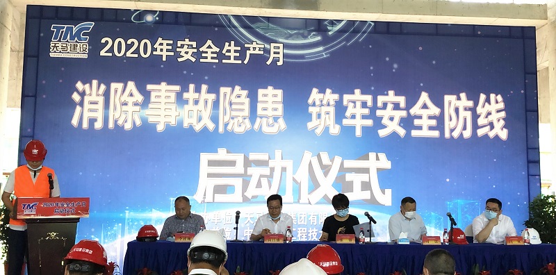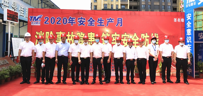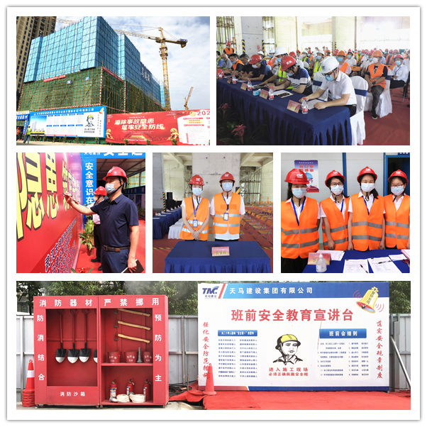 今年是第19個全國“安全生產(chǎn)月”,主題是“消除事故隱患、筑牢安全防線”。為了推進(jìn)本年度“安全生產(chǎn)月”活動的有序開展,進(jìn)一步提升集團(tuán)安全文明施工管理水平,營造出良好的安全生產(chǎn)氛圍,6月5日上午,武漢東湖高新住建局及天馬建設(shè)集團(tuán)2020年“安全生產(chǎn)月”啟動儀式,在我司承建的中冶南方國際社區(qū)三期項(xiàng)目部隆重舉行。東湖高新區(qū)住建局張蓉局長,東湖高新區(qū)建管站站長王萬連,武漢建設(shè)安全協(xié)會秘書長李祥林,中冶南方安全生產(chǎn)部部長司良,中冶南方(武漢)置業(yè)總經(jīng)理閆雙,天馬建設(shè)集團(tuán)總經(jīng)理高昌盛、監(jiān)事會主席張幼明、紀(jì)委書記李華彪、工會主席余勝利等及有關(guān)單位共計120余人出席了會議。