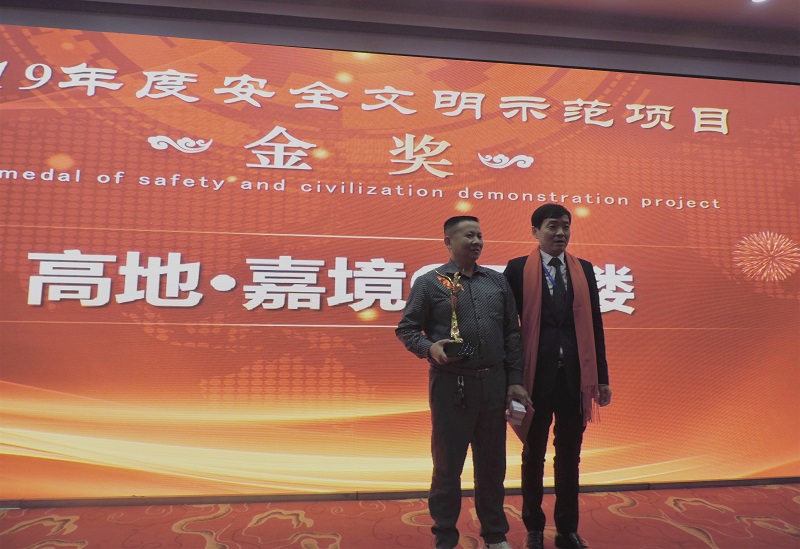 “2019年度安全文明示范項目金獎”: “嘉魚?高地嘉境二期”;頒獎人:集團黨委書記、董事長馮義橋