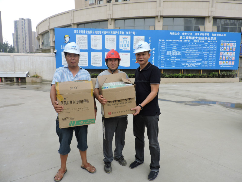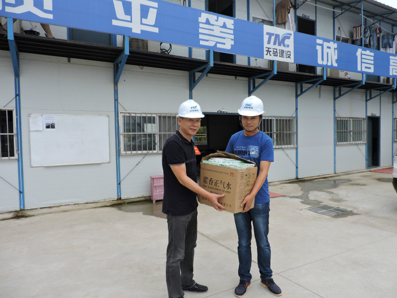 8月2日至5日,天馬建設(shè)集團(tuán)總工余勝利帶領(lǐng)辦公室、工程部、策劃部一行人,冒著高溫酷暑,對(duì)集團(tuán)各項(xiàng)目工地開展了“夏日送清涼”慰問活動(dòng),給一線工人們送去了綠豆、人丹、藿香正氣水等清涼防暑用品,讓一線工人們?cè)诳崾钪懈惺艿搅艘唤z舒心的涼意。