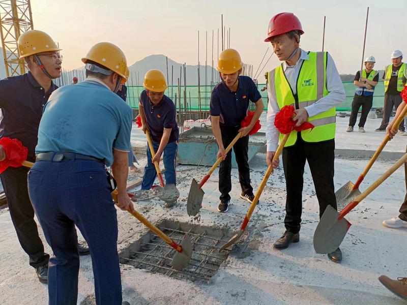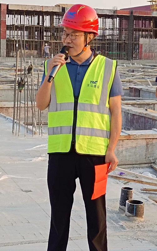 中新開維現代牧業(yè)項目位于鄂州市碧石渡鎮(zhèn)虹橋村,總投資40億元,建設兩棟26層高養(yǎng)殖大樓,總建筑面積80萬平方米,二號生產大樓總建筑面積約40萬平方米,總層高94.2米,待兩棟大樓全部順利投產后,可實現年出欄生豬120萬頭。該項目將成為中國生豬養(yǎng)殖行業(yè)勞動效率、防疫等級、環(huán)保低碳、人均薪資最高和綜合成本最低的現代化生豬養(yǎng)殖牧場之一。項目自2021年8月1日開工建設以來,項目管理人員合理統(tǒng)籌人材機,戰(zhàn)高溫、保工期、保投產、保交叉作業(yè)安全,做到不間斷施工,人停機械不停。生產大樓的1-2層為功能設施用房,3-26層為養(yǎng)殖標準層。養(yǎng)殖標準層采用大平層大單元設計,實行每層一條龍生產模式,實現豬的同層流轉。高層養(yǎng)豬是一系列創(chuàng)新的集成,突破關鍵技術,實現多項世界首創(chuàng),以規(guī)?;?、現代化、自動化、智能化、環(huán)?;?、低碳化的發(fā)展理念促進生豬養(yǎng)殖加快轉型升級,以創(chuàng)新引領生豬產業(yè)高質量發(fā)展。 在封頂儀式現場,總經理高昌盛致辭表示,今天是中華人民共和國成立73周年,在這個大喜的日子里,我們迎來了中新開維現代牧業(yè)二號生產大樓的喜封金頂,這是天馬建設集團有限公司與湖北中新開維現代牧業(yè)有限公司長期合作的結晶。自項目建設以來,我們嚴格做到了四個確保:保質量、保安全、保進度、保項目的和諧安定,如期完成建設任務。項目的順利封頂,標志著工程建設取得了階段性的勝利,也為下一步工作開創(chuàng)了良好局面,我們將繼續(xù)秉承“客戶至上、質量第一、安全第一”的經營理念,堅持“逢建必優(yōu)”的建設宗旨,繼續(xù)保持與中新開維的深度合作,以一流的管理、一流的質量、一流的信譽,建設一流的工程,以回報中新開維和諸葛董事長的信任與支持。